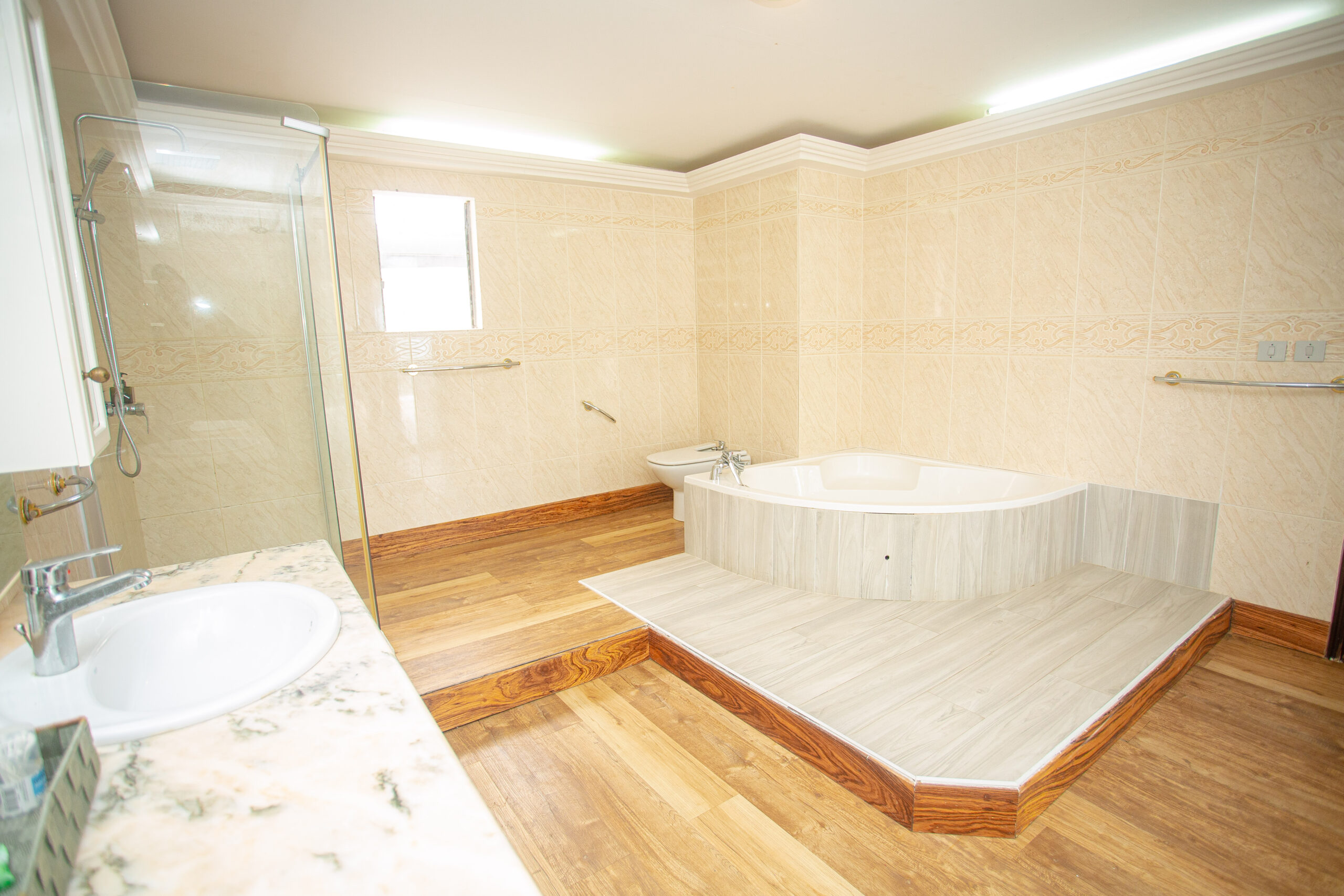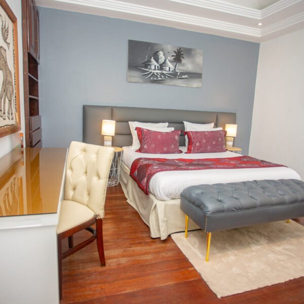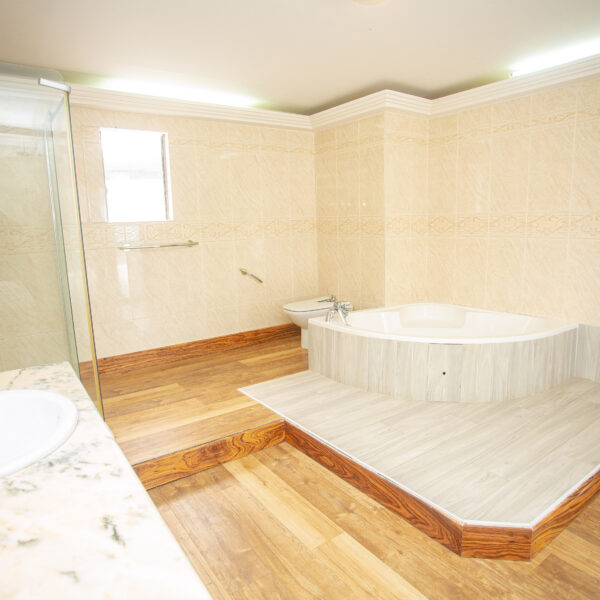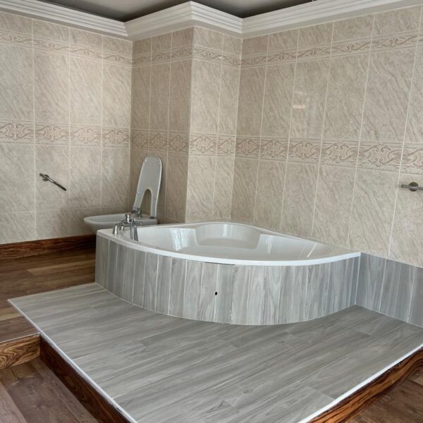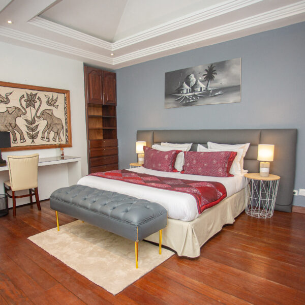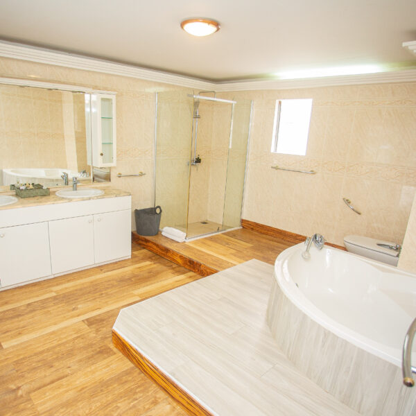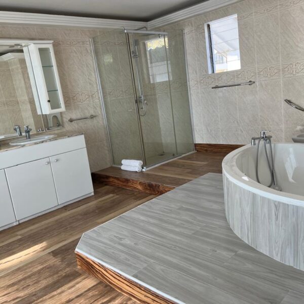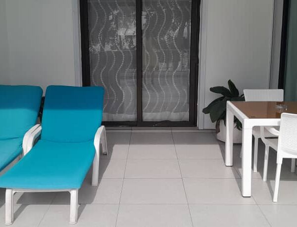 Emplacement magnifique en bord de mer avec 40 mètres carrés d’espace intérieur, situé face à la mer et la piscine, incluant une douche italienne et baignoire.