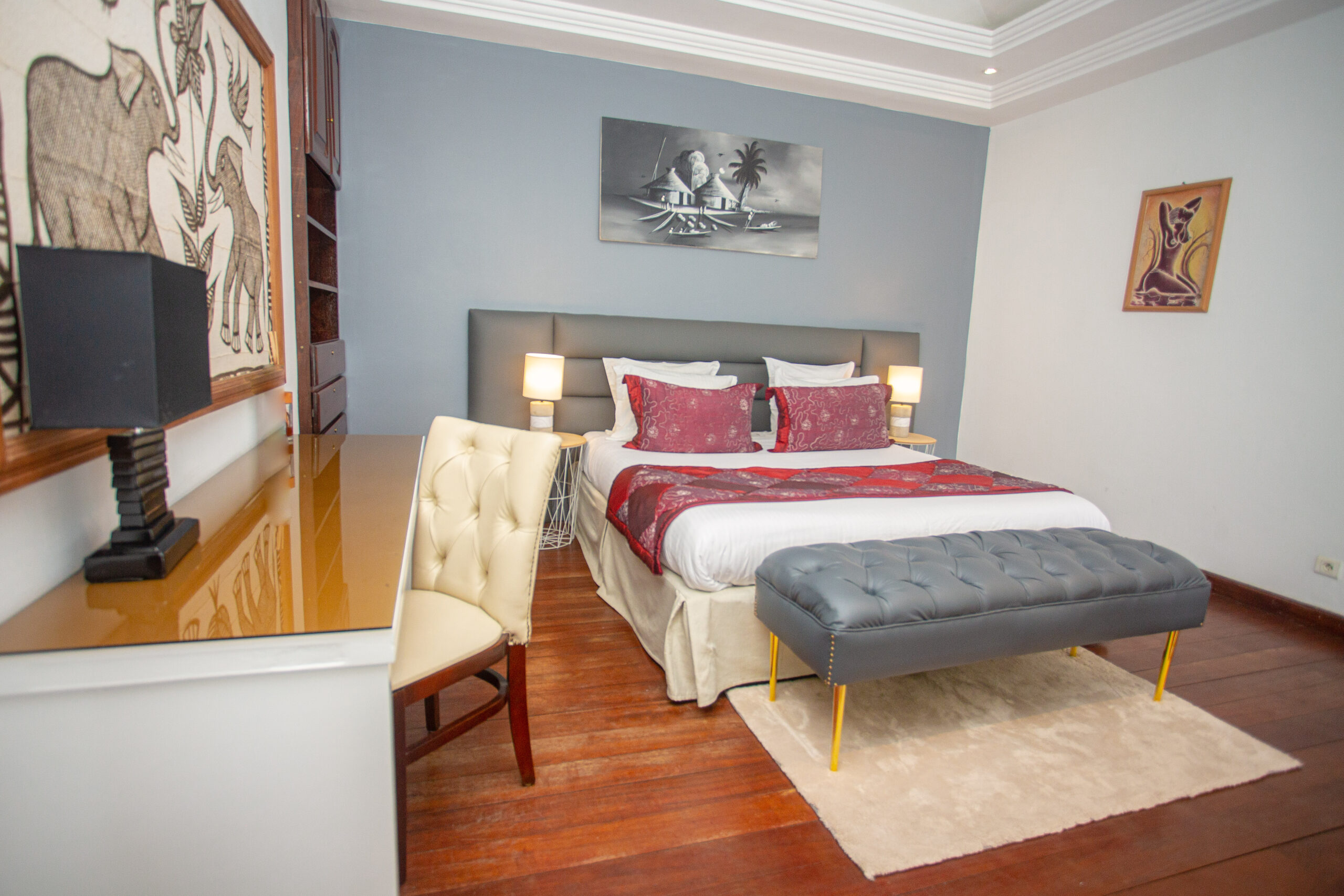 Chambre familiale d’une capacité de 4 personnes avec vue partielle sur mer